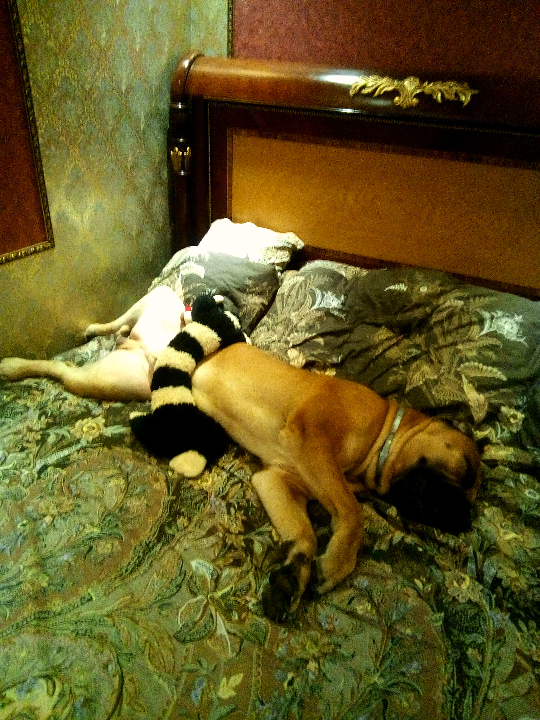 Зато теперь, дома - спит, так что пузыри лопаются)) М-дя, а когда то эта спальня была моей))))))) Теперь он там спит...Причем, поперек кровати, подлюга)))