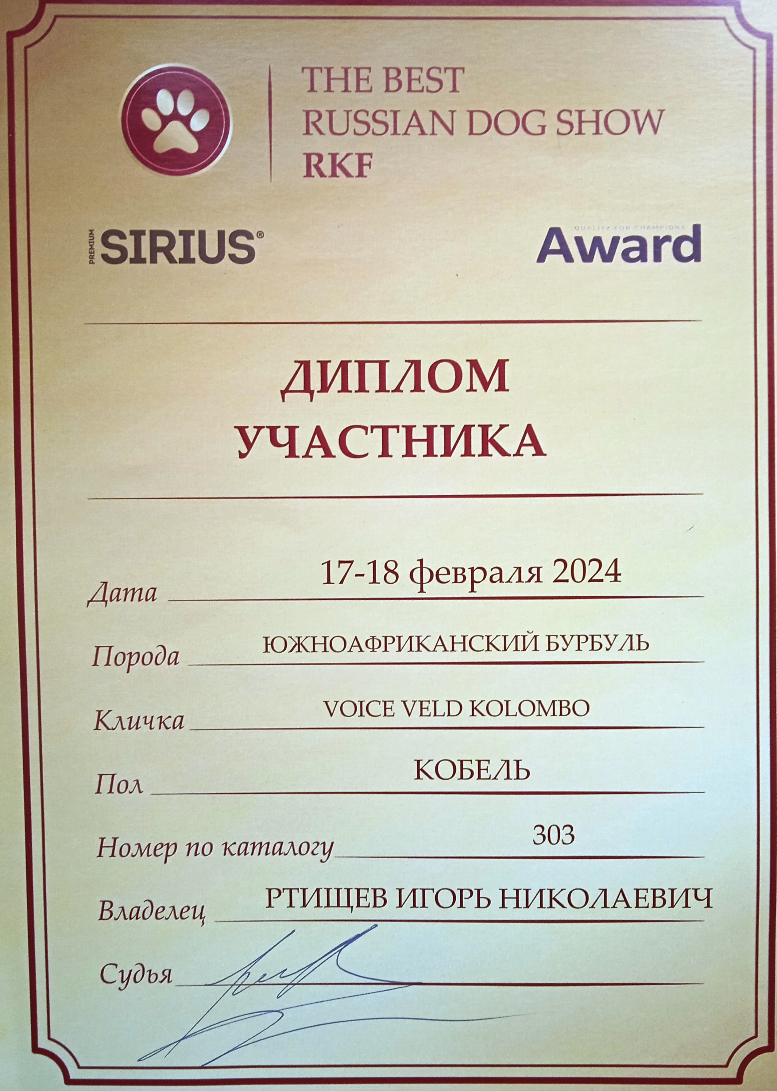 "Чемпион РКФ" с особым статусом.